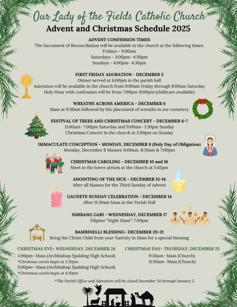 We invite you to sign up to have your family light the Advent Wreath and participate in the Presentation the Gifts during a weekend Mass. Click here to pick a time and date.